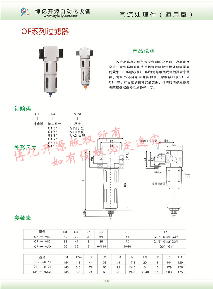 OF過濾器也可稱為OF油水分離器,也有客戶稱之為OF過濾水杯,其主要的尺寸由G1/8到G1寸之間,更多的技術(shù)咨詢請(qǐng)聯(lián)系本公司技術(shù)部:0371-85612788。