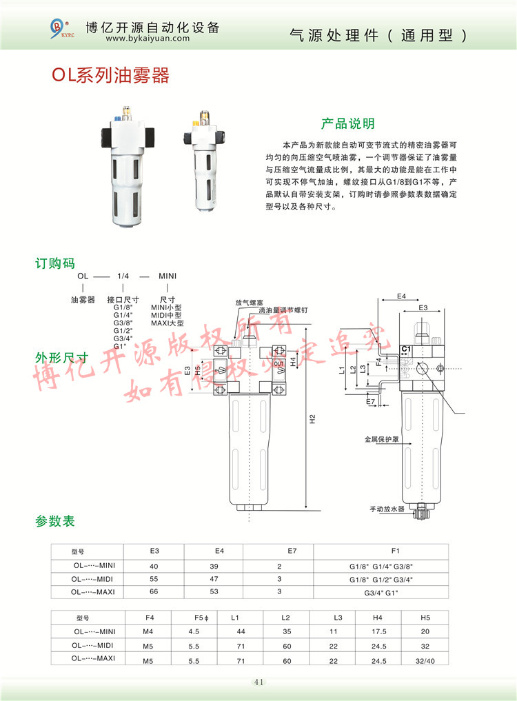 OL系列油霧器加油器,也有客戶稱之為OF油杯,其主要的尺寸由G1/8到G1寸之間,新款的調(diào)節(jié)器保證了油霧量和空氣的比例,更多的技術咨詢請聯(lián)系本公司技術部:0371-85612788。