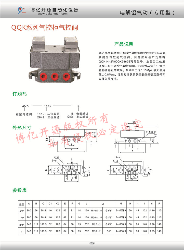 QQK1442和QQK2462B是全氣動(dòng)控制的氣控閥,主要用于電解鋁行業(yè)母線提升框架氣控柜的氣控閥,用于控制提升框架的行走馬達(dá)和提升氣缸,更多的技術(shù)咨詢請(qǐng)聯(lián)系本公司技術(shù)部:0371-85612788。
