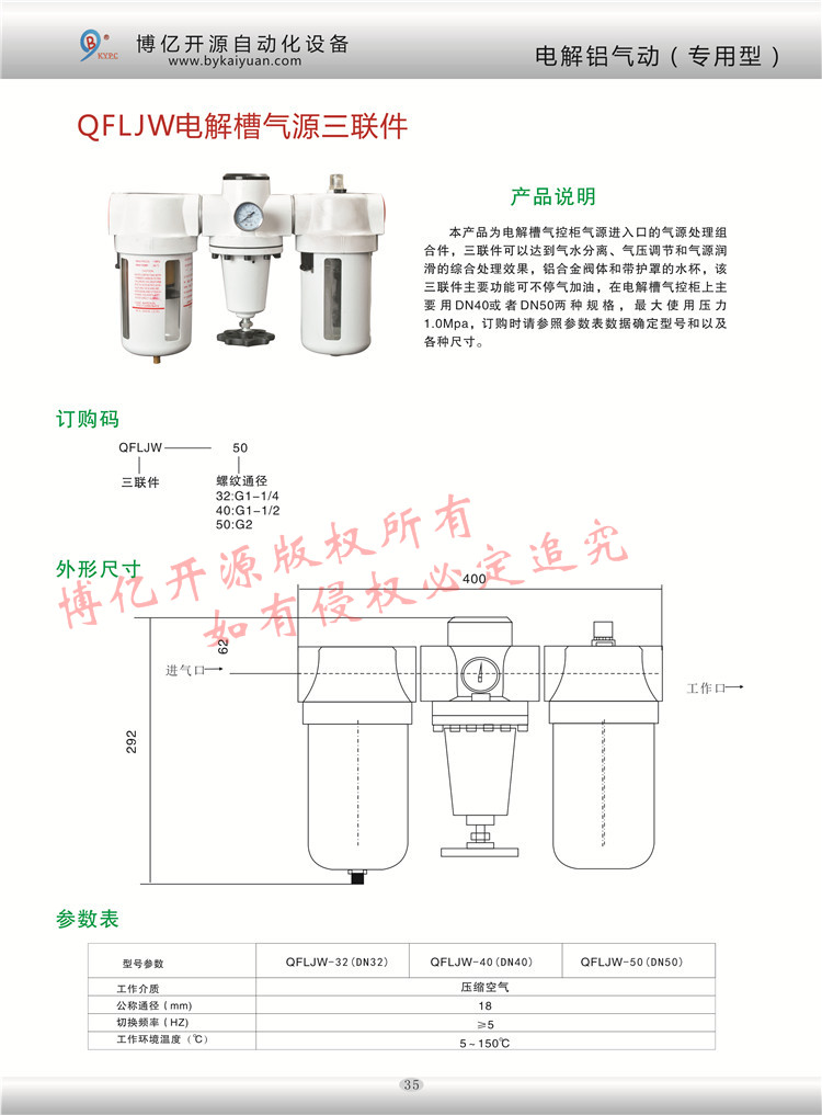 【產(chǎn)品名稱】:QFLJW電解槽氣源三聯(lián)件