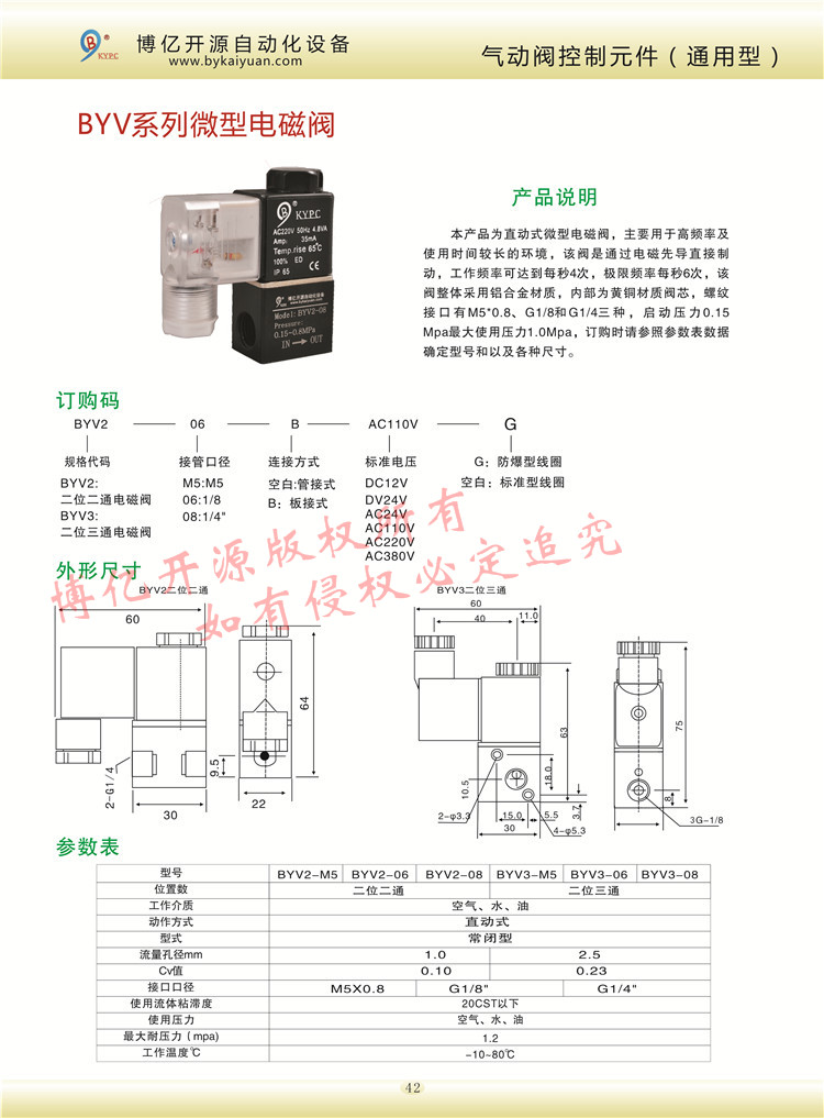 【產(chǎn)品名稱】:BYV3二位三通微型電磁閥