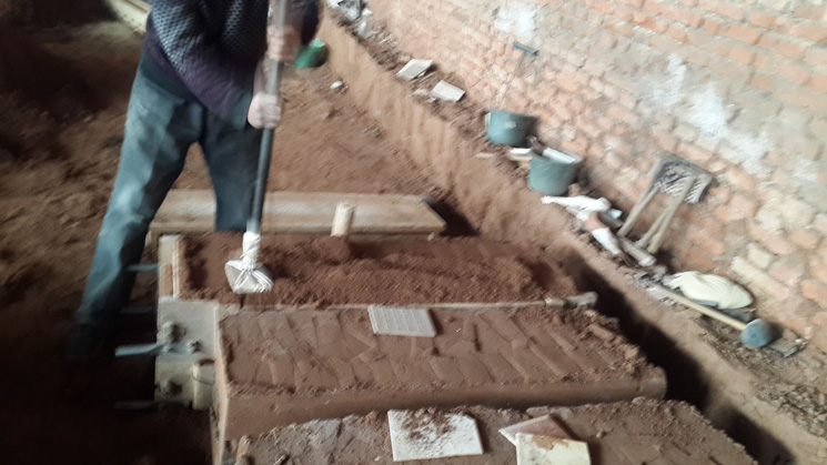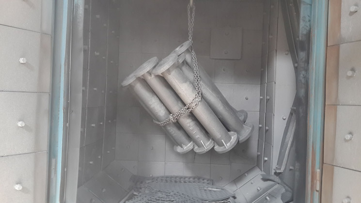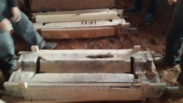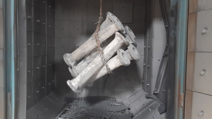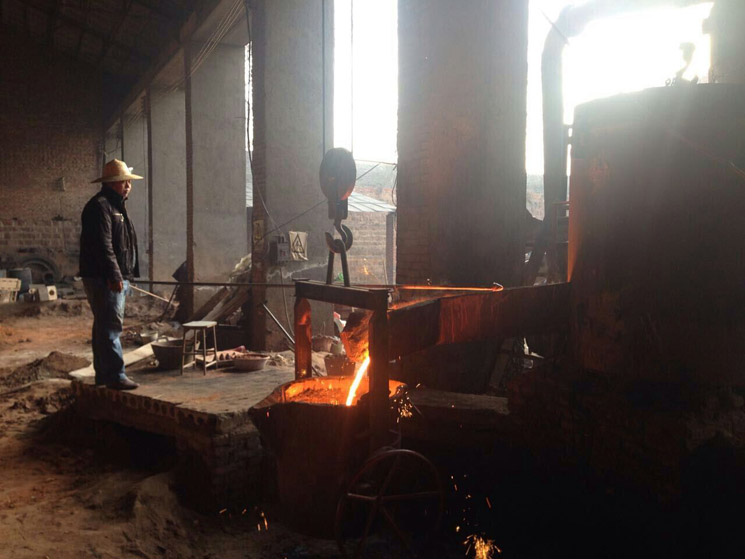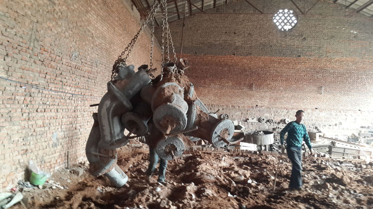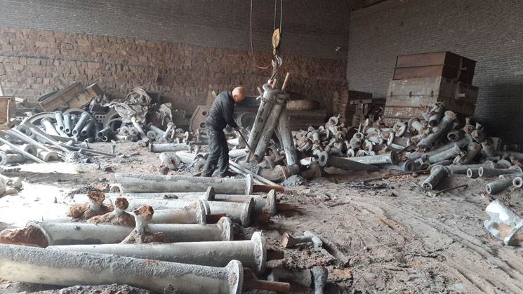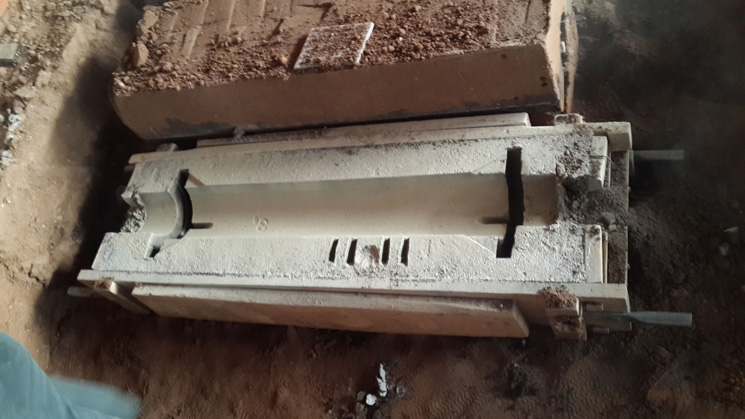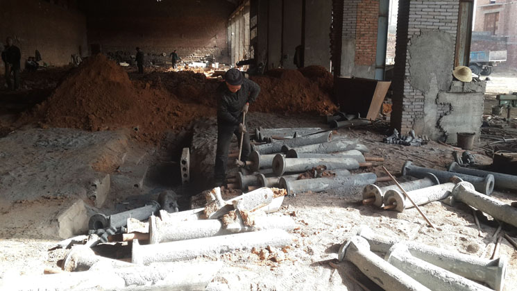 4、鑄完停12個(gè)小時(shí)開(kāi)始刨吸鋁管