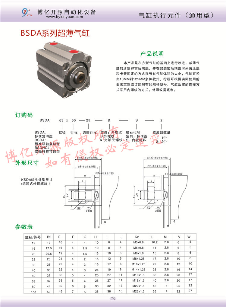 BSDA系列超薄型氣缸是博億開源自主研發(fā)的緊湊型省空間安裝氣缸,氣缸直徑10-125,氣缸行程根據客戶選擇貨定制,氣缸可安裝帶磁感應和各種安裝附件,更多的技術咨詢請聯系本公司技術部:0371-85612788。